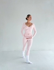 Комплект Anna — ніжність, яка підкреслює силу.М’яка, еластична тканина делікатно облягає тіло, не сковуючи рухів, а ніжний рожевий відтінок додає відчуття спокою й гармонії.Топ із жіночним вирізом та продуманою посадкою акцентує лінію декольте, а легінси створюють ідеальний силует.Цей образ — баланс витонченості та впевненості. Ідеально підходить для йоги, розтяжки або спокійних ранкових практик. 🌸