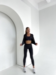 Легінси з високою посадкою підкреслюють силует, топ ідеально тримає форму, а легка кофта додає завершеності образу.