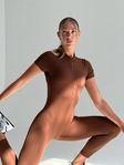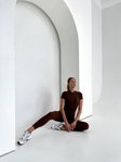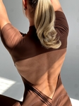 Стильний шоколадний комбінезон із відкритою спинкою. Підкреслює силует, додає звабливості та дарує комфорт у русі🌿